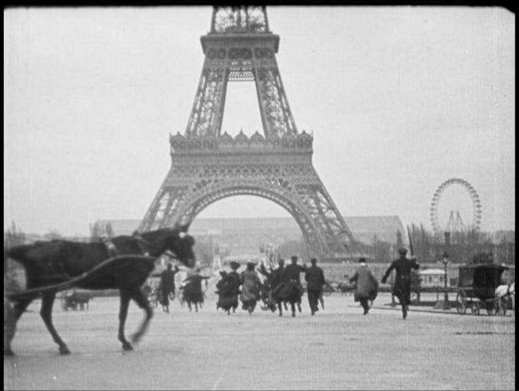 Le 27 décembre 2023 marque le centenaire de la disparition de Gustave Eiffel. De nombreuses études abordent la façon dont la tour qui porte son nom a inspiré les peintres (Bonnard, Chagall, Delaunay, De Staël, etc.) et les poètes (Apollinaire, Cendrars, Cocteau, Queneau, etc.) depuis sa construction en 1889 à l’occasion de l’Exposition universelle du centenaire de la Révolution française. Mais sa présence dans le cinéma muet, contemporain de la construction du monument, est restée dans l’ombre.